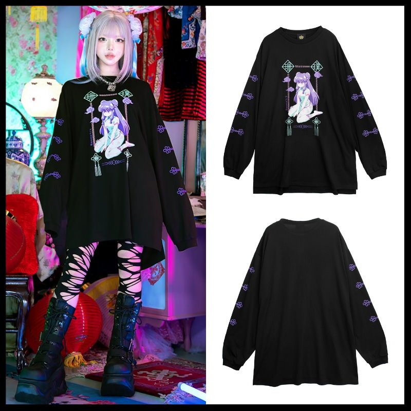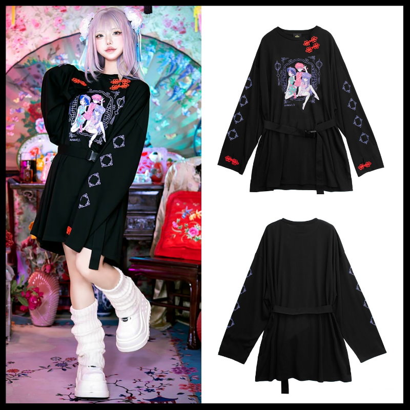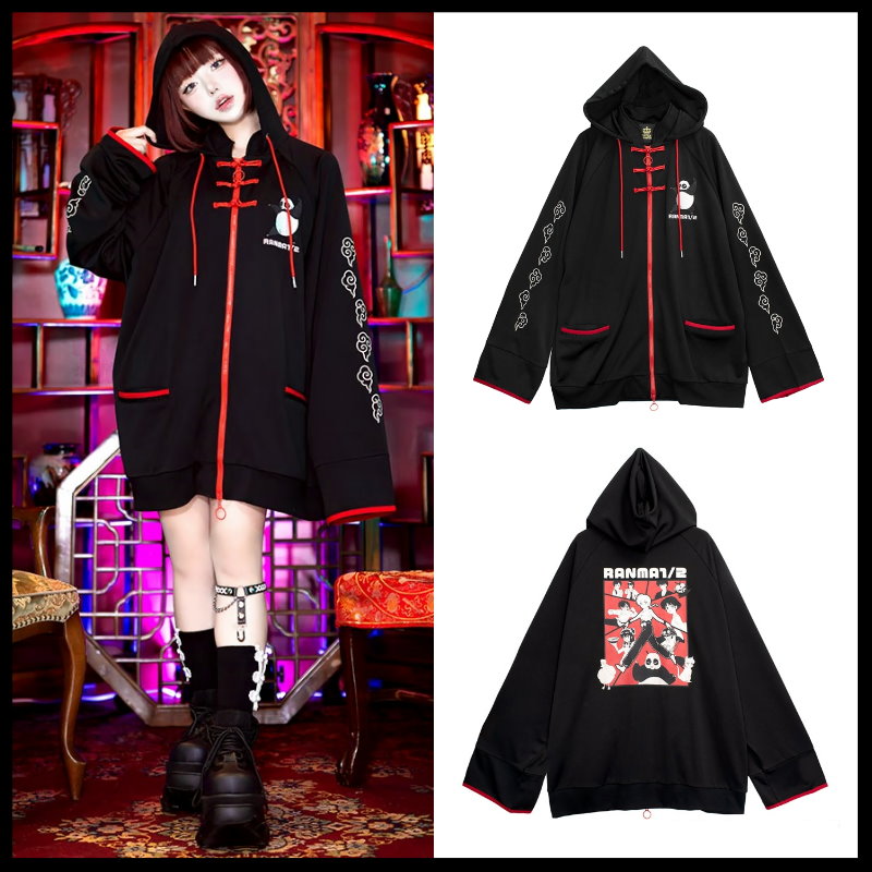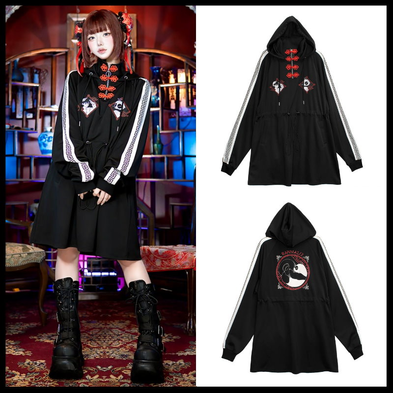 *MINI PUNK LOLO*日本原宿街頭-シャイニーなメタルハートに鋭く尖った有刺鉄線が絡みつくエッジィで重厚感のあるオーバーサイズパーカー連帽上衣(2523553)PUNK