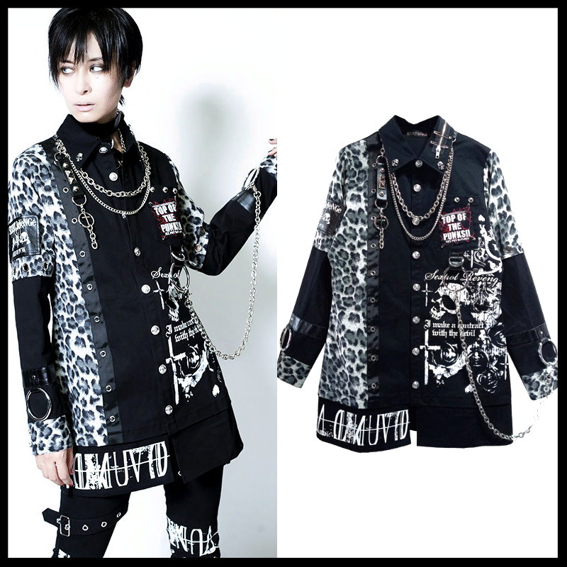 *MINI PUNK LOLO*日本龐克視覺-十字架を中心に、鎖と骨の両腕が広がる。権威と退廃を象徴する荘厳なゴシックグラフィック豹紋拼接龐克襯衫(中性.sb02089)PUNK