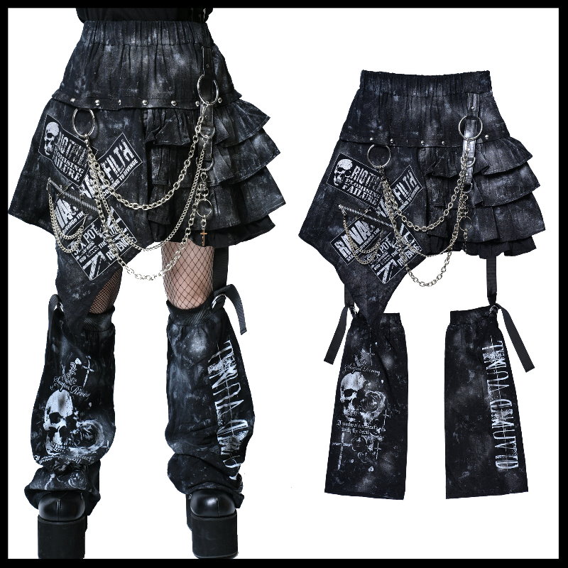 *MINI PUNK LOLO*日本龐克視覺-【パンキッシュ ブラック フリル スカート&レッグウォーマー】頹廢感荷葉邊龐克短裙+腿套(中性.SC01175)SEX POT