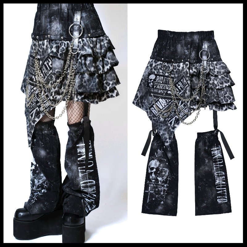 *MINI PUNK LOLO*日本龐克視覺-【パンキッシュ ブラック フリル スカート&レッグウォーマー】頹廢感荷葉邊豹紋龐克短裙+腿套(中性.SC01177)SEX POT