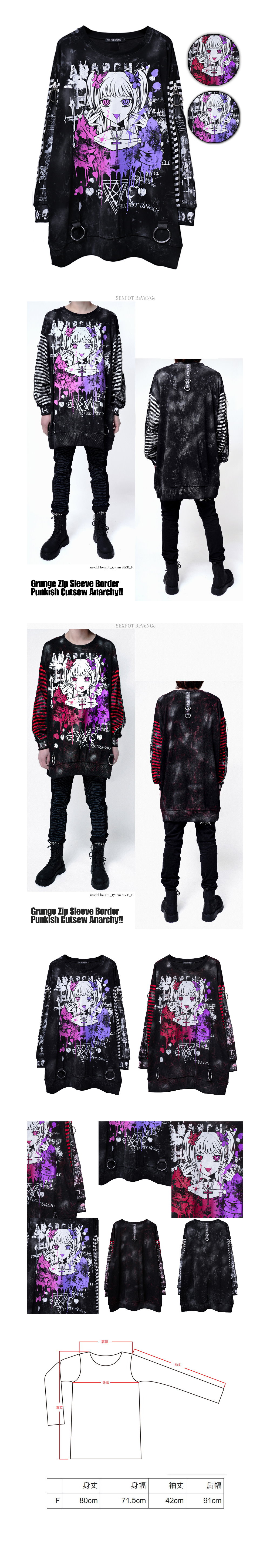 *MINI PUNK LOLO*日本龐克視覺-【アナーキー!!グランジジップスリーブボーダー パンキッシュ カットソー】無政府主義!(中性.SA681460)SEX POT 數量