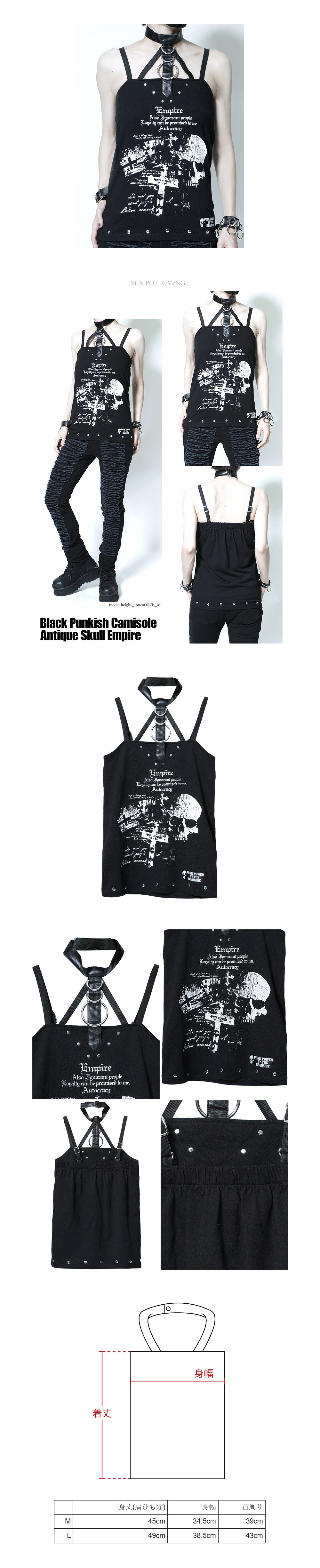 *MINI PUNK LOLO*日本龐克視覺-【アンティーク スカル エンパイア ブラック パンキッシュ キャミソール】骷髏頭龐克吊帶背心(中性.sa681390)PUNK
