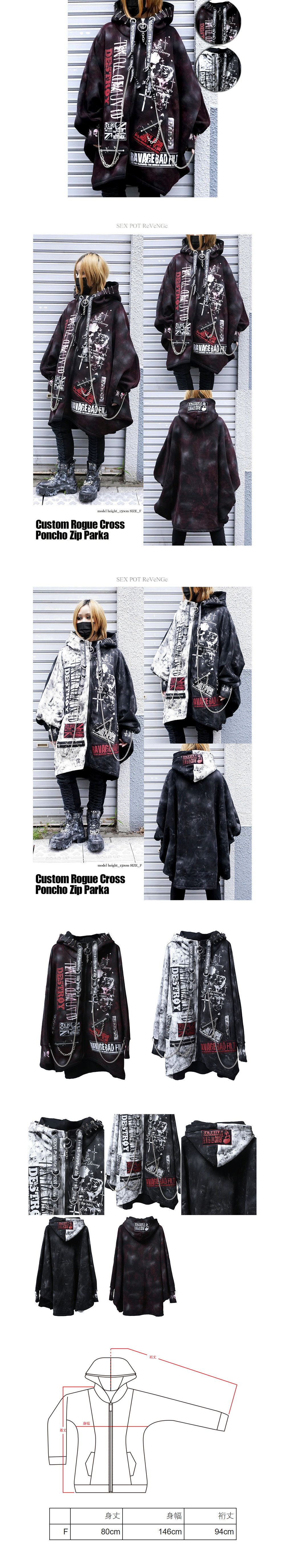 *MINI PUNK LOLO*日本龐克視覺-【カスタム ルージュ クロス ポンチョ ジップ パーカ】骷髏頭英文布章龐克連帽外套(sb08795)SEX POT