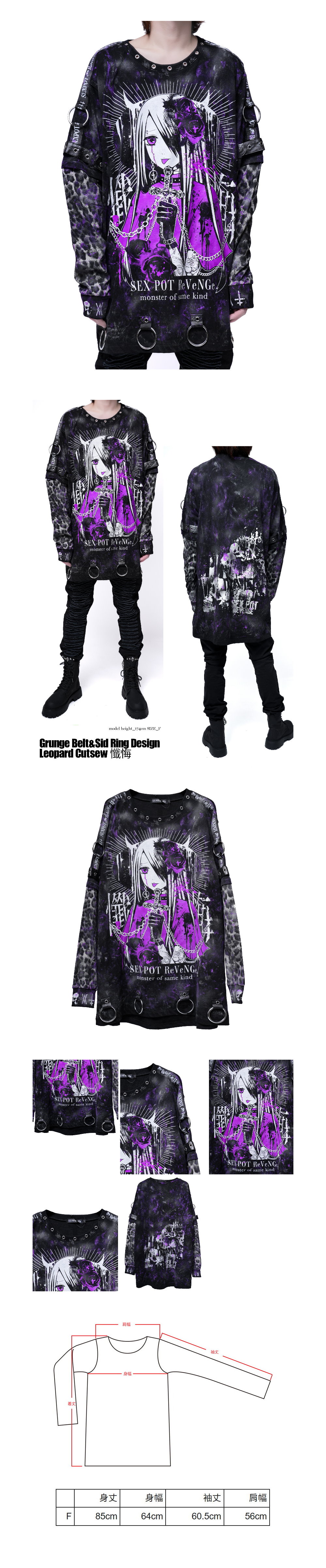*MINI PUNK LOLO*日本龐克視覺-【ザンゲ グランジ ベルト アンド サイド リング デザイン ワッシャー カットソー】罪惡祈禱の女龐克上衣(中性.SA681464)SEX POT