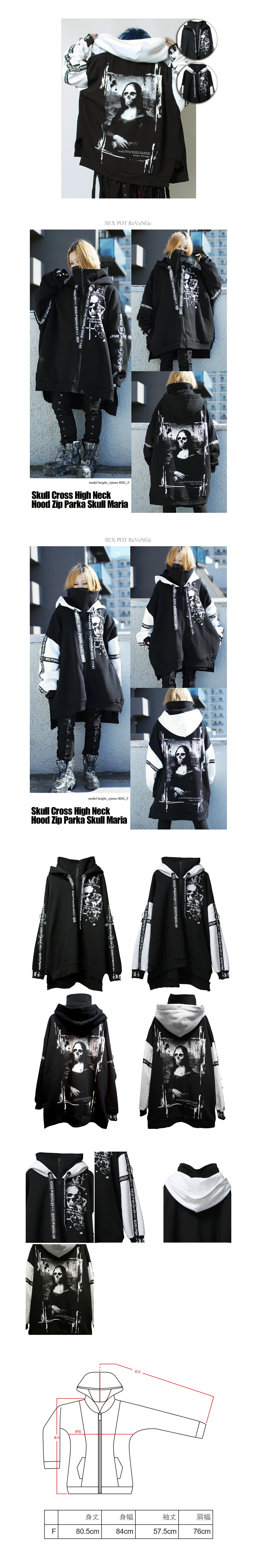 *MINI PUNK LOLO*日本龐克視覺-【スカル マリア スカル クロス ハイ ネック フード ジップ パーカ】瑪麗亞骷髏龐克連帽外套(sb08798)SEX POT