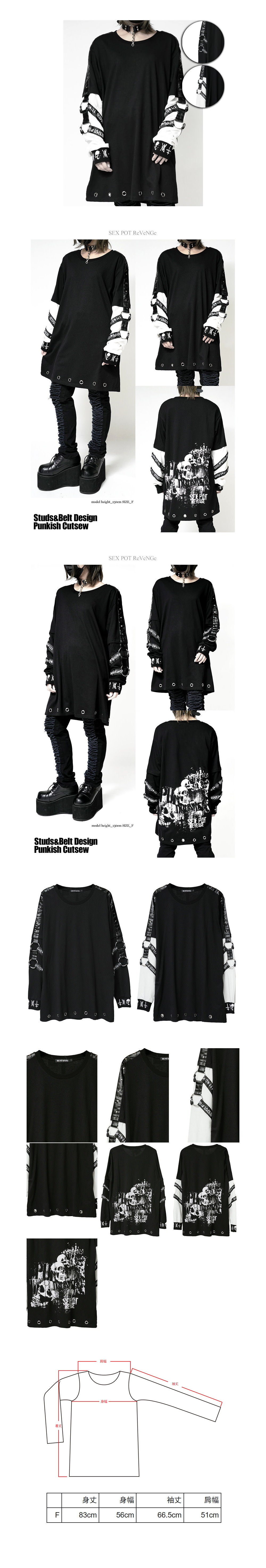 *MINI PUNK LOLO*日本龐克視覺-【スタッズ & ベルト デザイン パンキッシュ カットソー】龐克上衣(中性.sa681456)SEX POT