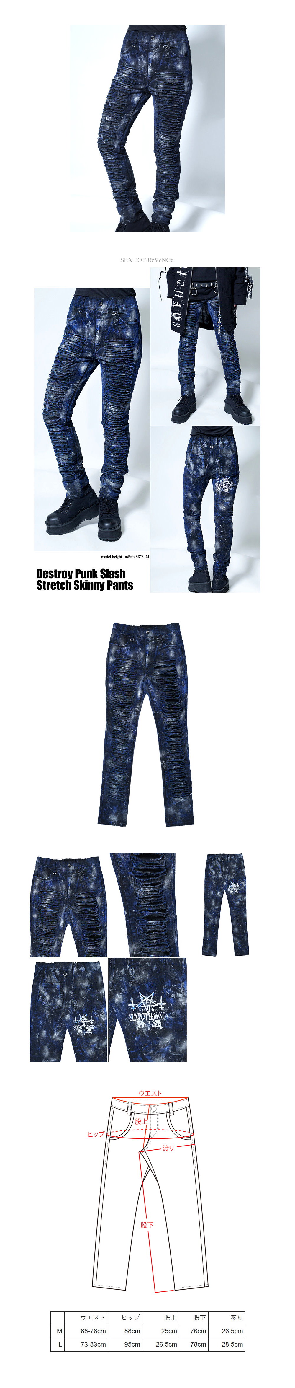 *MINI PUNK LOLO*日本龐克視覺-【デストロイ パンク スラッシュ ストレッチ スキニー パンツ レッド】頹廢抓破龐克褲(中性.sc02383)PUNK (複製) 數量