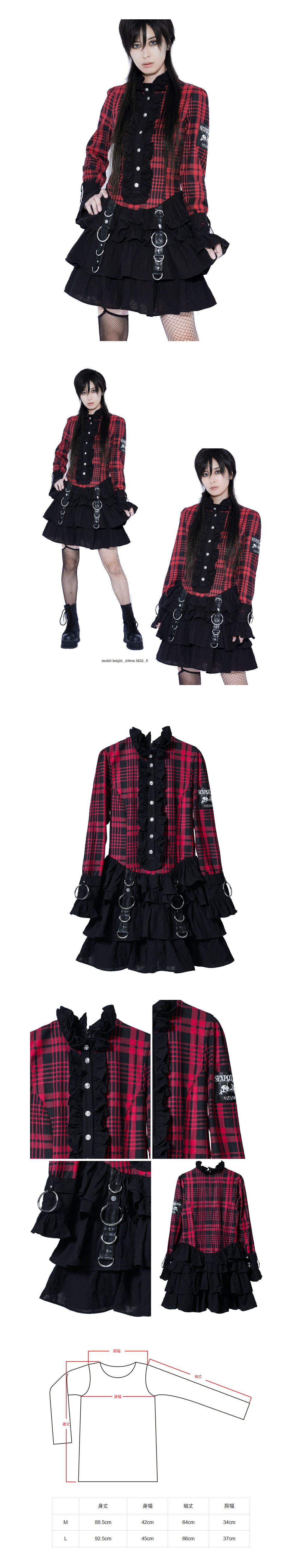 *MINI PUNK LOLO*日本龐克視覺-【バンダルクイーン チェックガーゼ フリル ワンピース】紗布荷葉邊連身裙(中性.SB03212)SEX POT