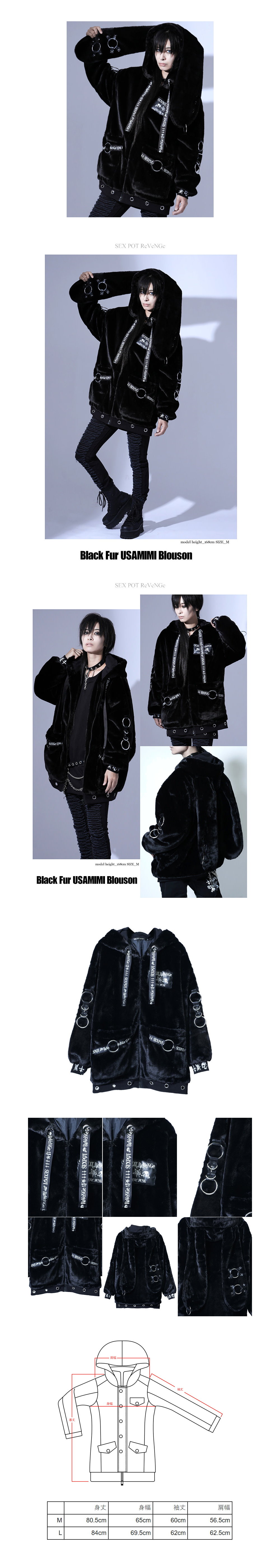 *MINI PUNK LOLO*日本龐克視覺-【ブラック ァーうさみみブルゾンボryュみみブルゾン】ボryューミーなもこ大兔耳毛絨龐克外套(中性.sb05137)PUNK