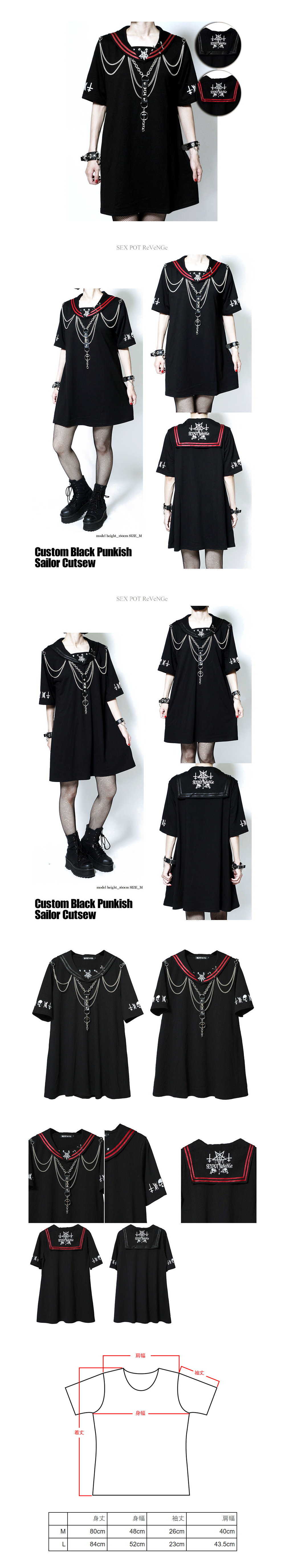 *MINI PUNK LOLO*日本龐克視覺-【ブラック パンキッシュ セーラー カットソー】五芒星鐵鏈龐克水手服(中性.sa681403)PUNK (複製)