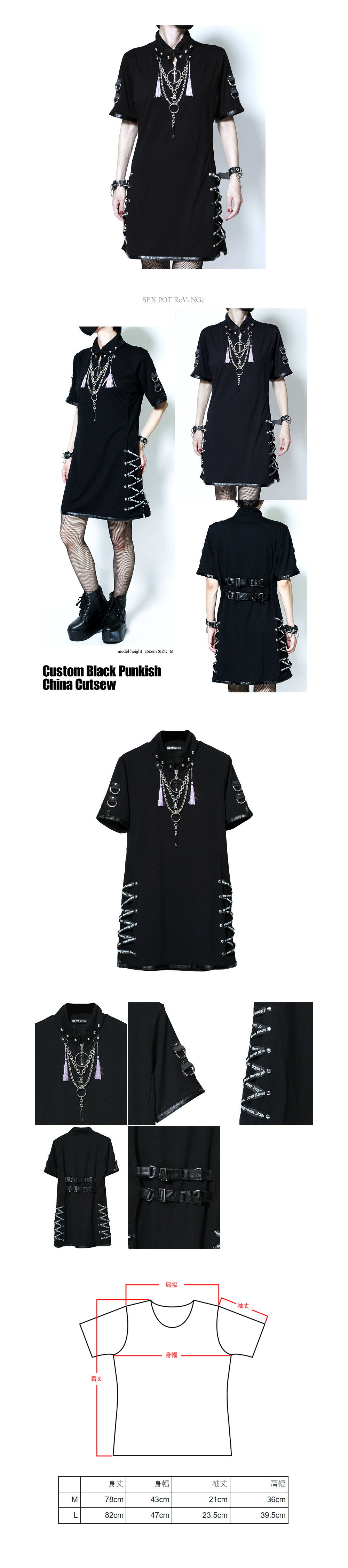 *MINI PUNK LOLO*日本龐克視覺-【ブラック パンキッシュ チャイナ カットソー】セクポらしいディテールが詰まったチャイナ風カットワンピース!(中性.sa681394)PUNK