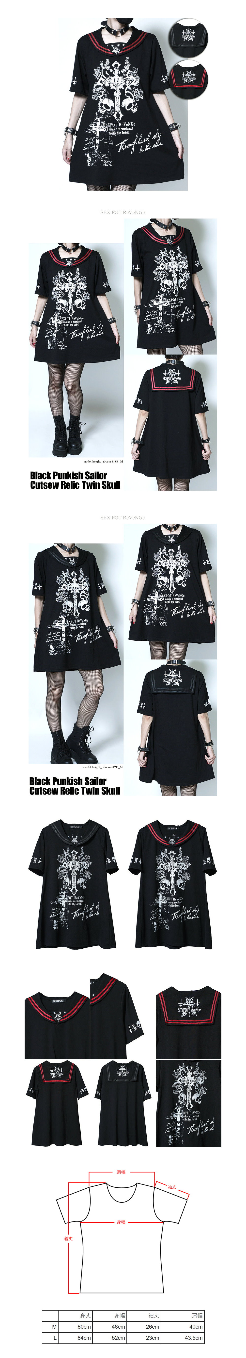 *MINI PUNK LOLO*日本龐克視覺-【レリック ツイン スカル ブラック パンキッシュ セーラー カットソー】龐克水手服(中性.sa681404)PUNK 數量