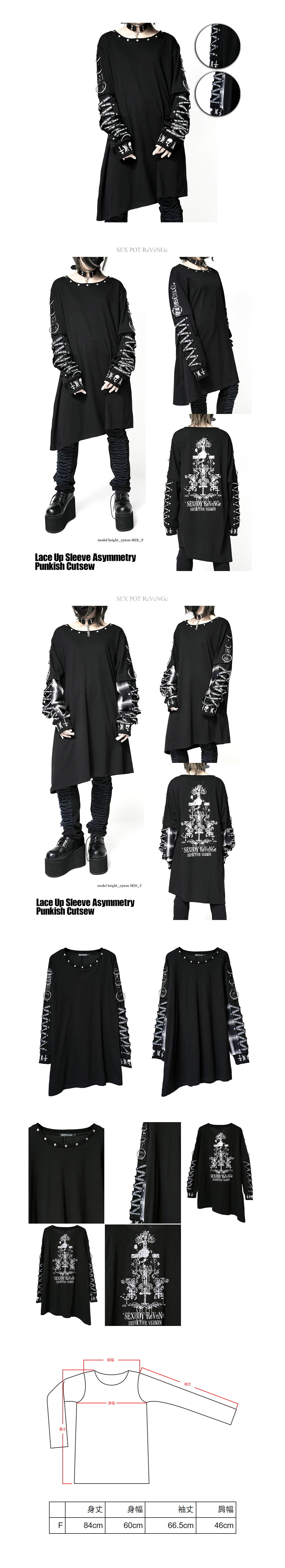 *MINI PUNK LOLO*日本龐克視覺-【レース アップ スリーヴ アシンメトリー パンキッシュ カットソー】龐克上衣(中性.sa681450)SEX POT