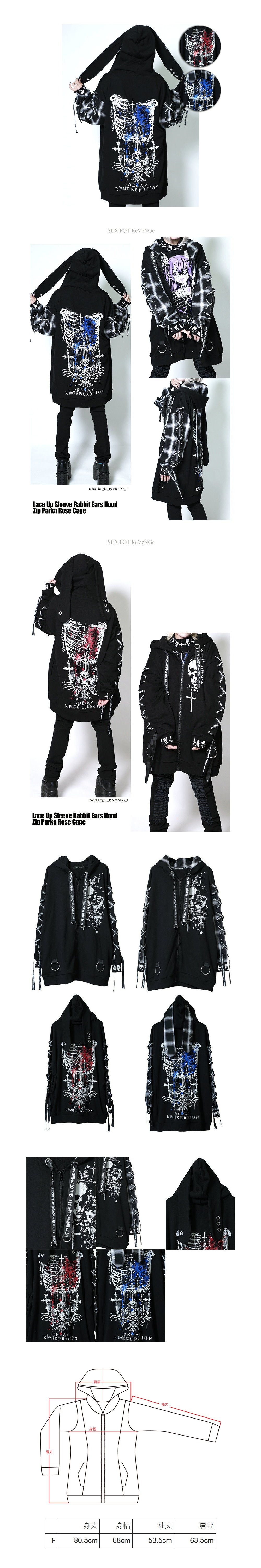 *MINI PUNK LOLO*日本龐克視覺-【ローズ ケージ レース アップ スリーヴ ラビット イヤーズ フード ジップ パーカ】兔耳連帽龐克外套(中性.sb08778)PUNK