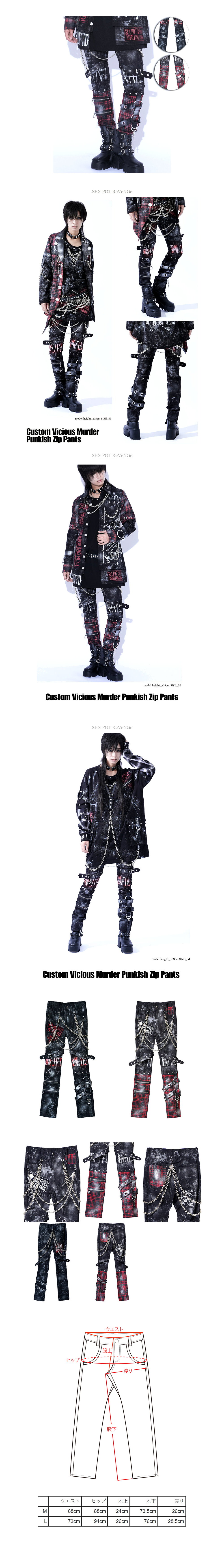 *MINI PUNK LOLO*日本龐克視覺-【ヴィシャス マーダー パンキッシュ ジップ パンツ】ひざ下のダブルZIPとボンテージデザイン扣帶龐克長褲(中性.sc02387)PUNK