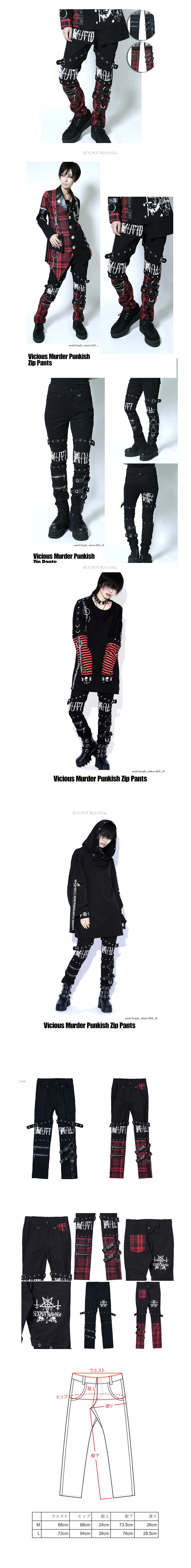 *MINI PUNK LOLO*日本龐克視覺-【ヴィシャス マーダー パンキッシュ ジップ パンツ】ひざ下のダブルZIPとボンテージデザイン扣帶龐克長褲(中性.sc02386)PUNK