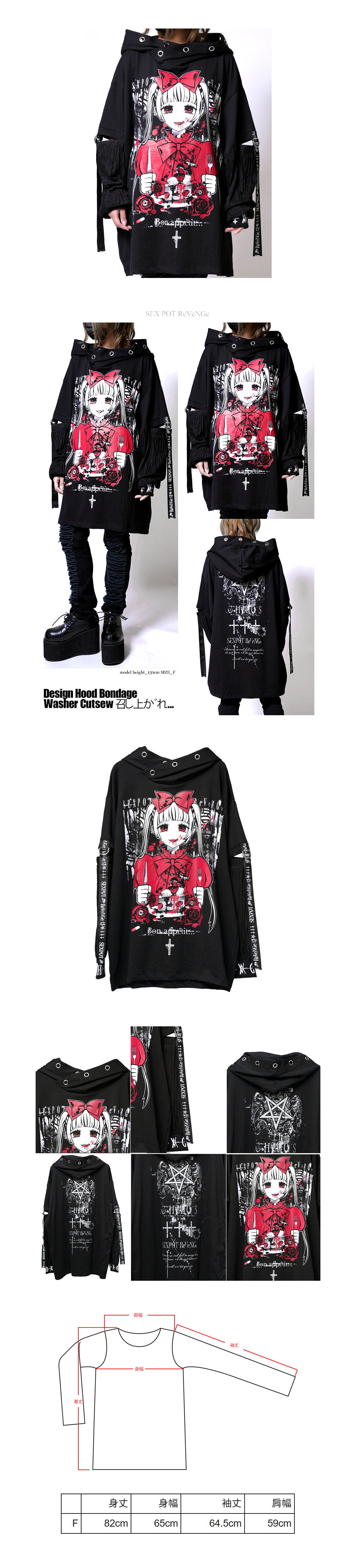 *MINI PUNK LOLO*日本龐克視覺-【召し上がれ… デザイン フード ボンデージ ワッシャー カットソー】連帽龐克上衣(中性.sa681467)SEX POT