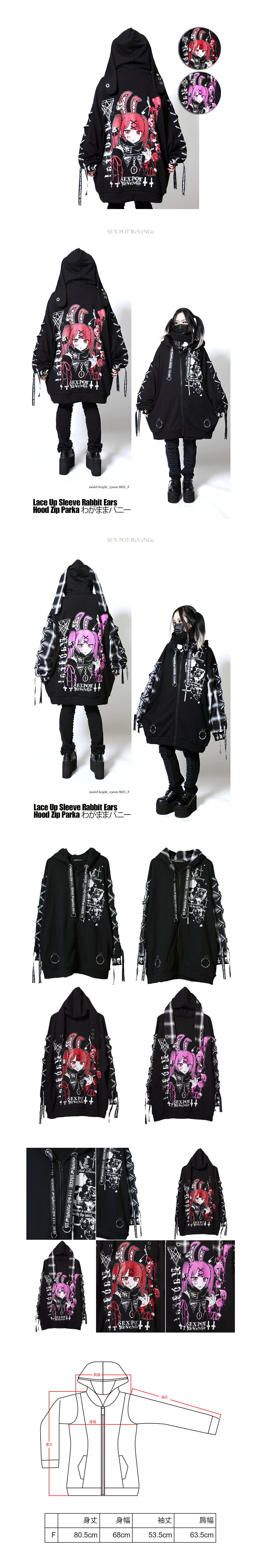 *MINI PUNK LOLO*日本龐克視覺-わがままバニー レース アップ スリーヴ ラビット イヤーズ フード ジップ パーカ】人気のレースアップパーカにうさ耳バージョンが登場!兔耳龐克外套(中性.sb08782)PUNK