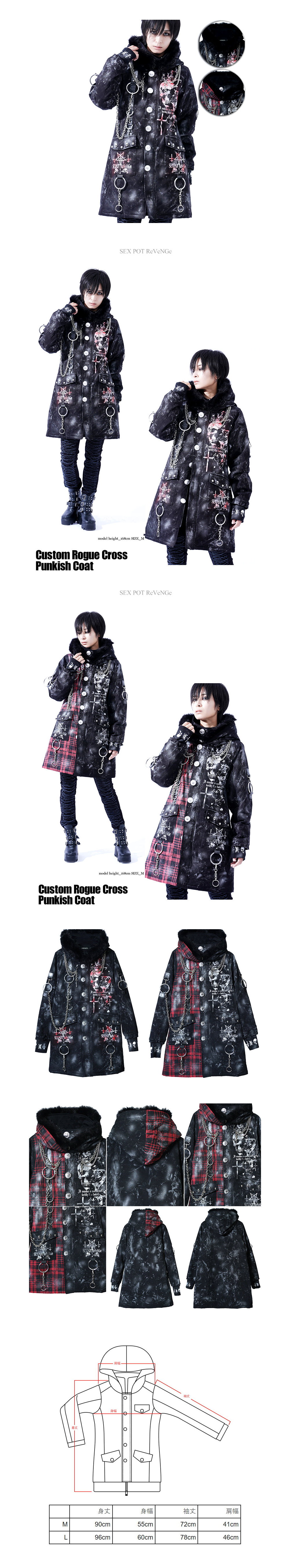 *MINI PUNK LOLO*日本龐克視覺-セクポらしいディテールが詰まったコートです。襟は高めのハイネック、ファーのついたゴージャスPUNKなデザイン連帽龐克大衣(中性.sb04072)PUNK
