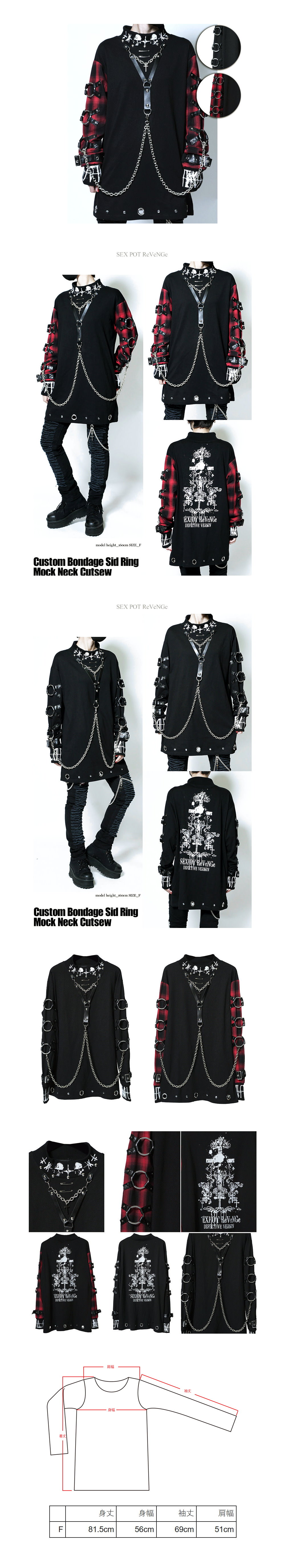 *MINI PUNK LOLO*日本龐克視覺-ボンテージデザインのシドリングが目を惹くPUNKISHなモックネックカットソーです立領龐克上衣(中性.sa681408)PUNK