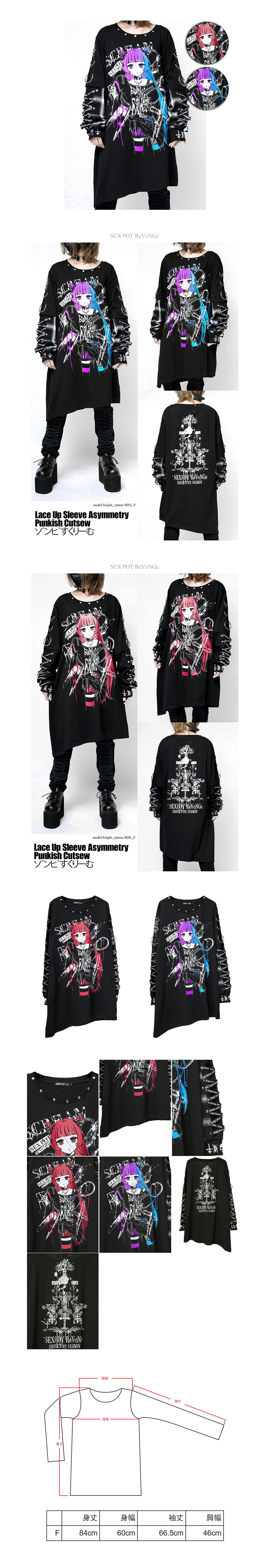 *MINI PUNK LOLO*日本龐克視覺-搖滾迷幻殭屍女孩の英文織帶不對稱下襬龐克上衣(中性.sa681471)SEX POT