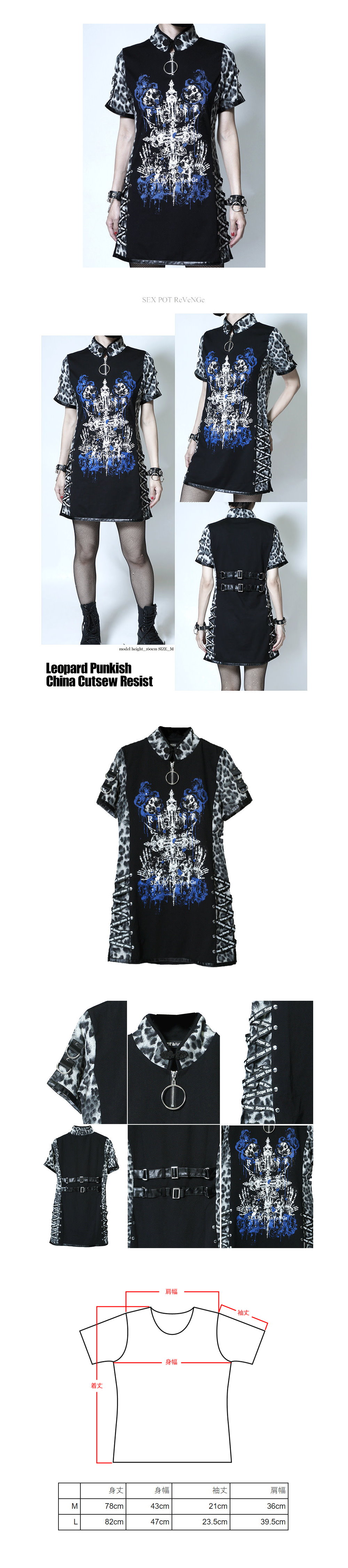 *MINI PUNK LOLO*日本龐克視覺-禍々しく咲き誇る髑髏と薔薇。普通に抵抗し続けるメッセージ性を込めたグラフィック中國風連身裙(中性.sa681399)PUNK 數量