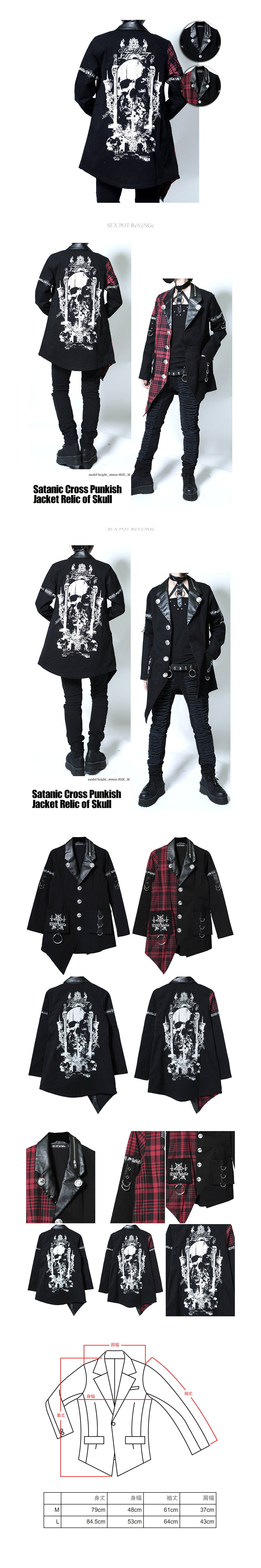 *MINI PUNK LOLO*日本龐克視覺-荘厳な十字架と二重のスカルが織り成す、退廃的でエレガントなゴシックグラフィック龐克西裝外套(中性.sb05136)PUNK