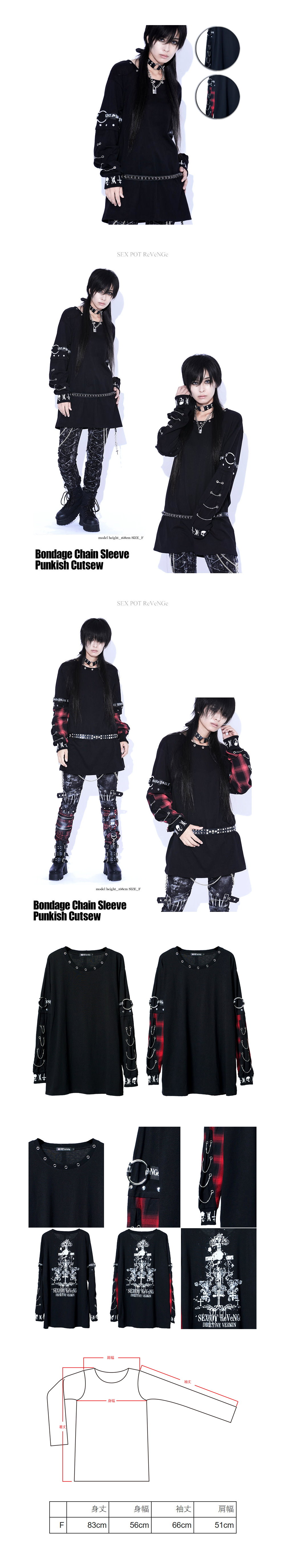 *MINI PUNK LOLO*日本龐克視覺-袖のシドリングとチェーン使いがPUNKISHなデザインカットソーです龐克上衣(中性.sa681424)PUNK
