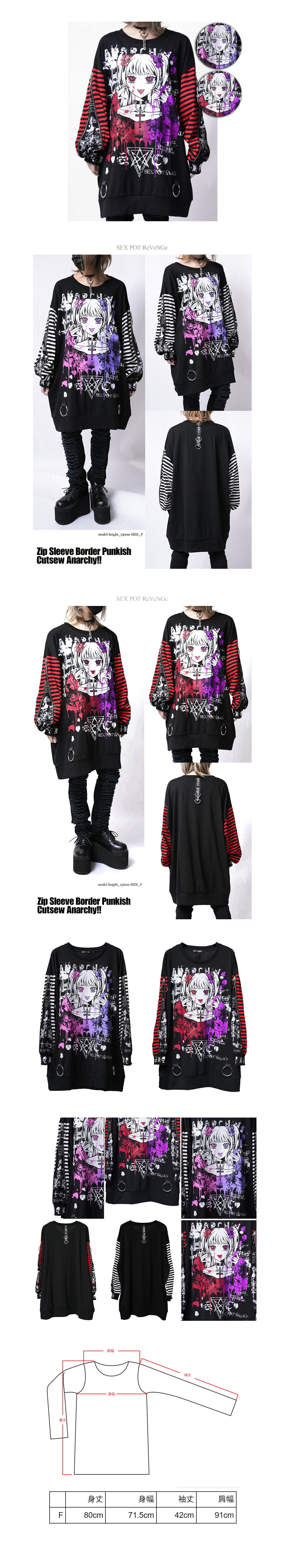 *MINI PUNK LOLO*日本龐克視覺-ANARCHY!條紋拼接拉鍊袖龐克上衣(中性.sa681473)SEX POT