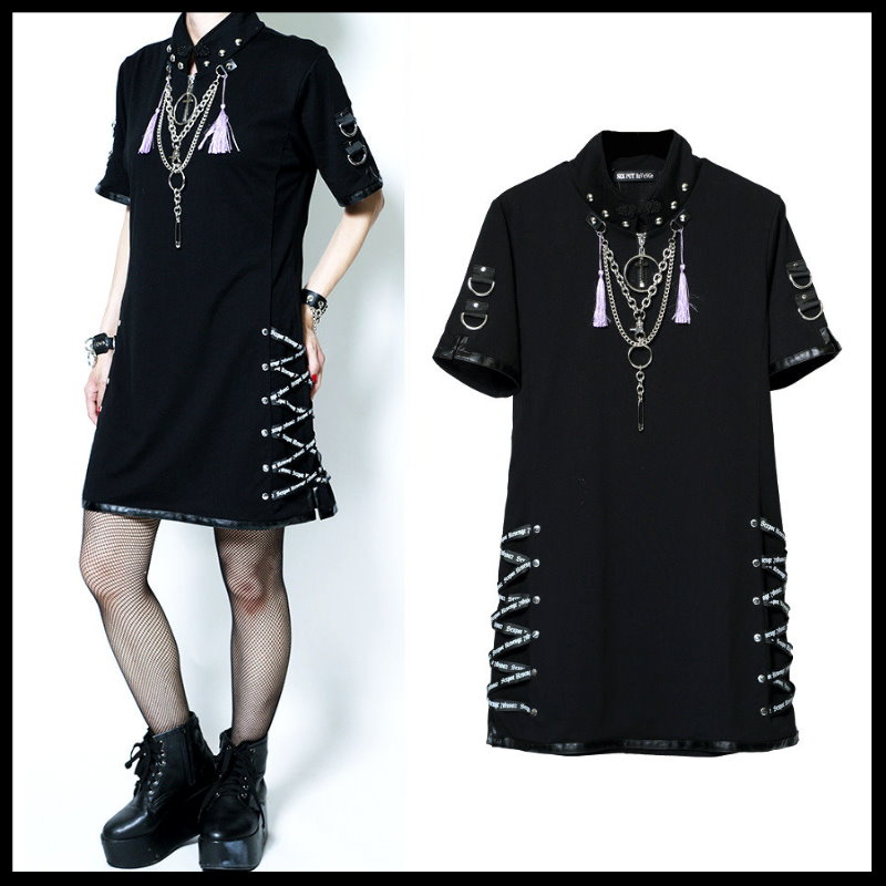 *MINI PUNK LOLO*日本龐克視覺-ボンテージデザインのシドリングが目を惹くPUNKISHなモックネックカットソーです立領龐克上衣(中性.sa681408)PUNK