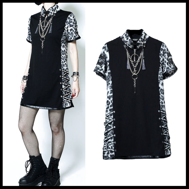 *MINI PUNK LOLO*日本龐克視覺-ボンテージデザインのシドリングが目を惹くPUNKISHなモックネックカットソーです立領龐克上衣(中性.sa681407)PUNK